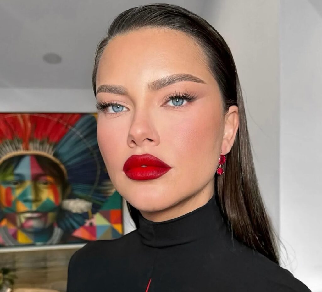 - Labial rojo cálido o rojo intenso.