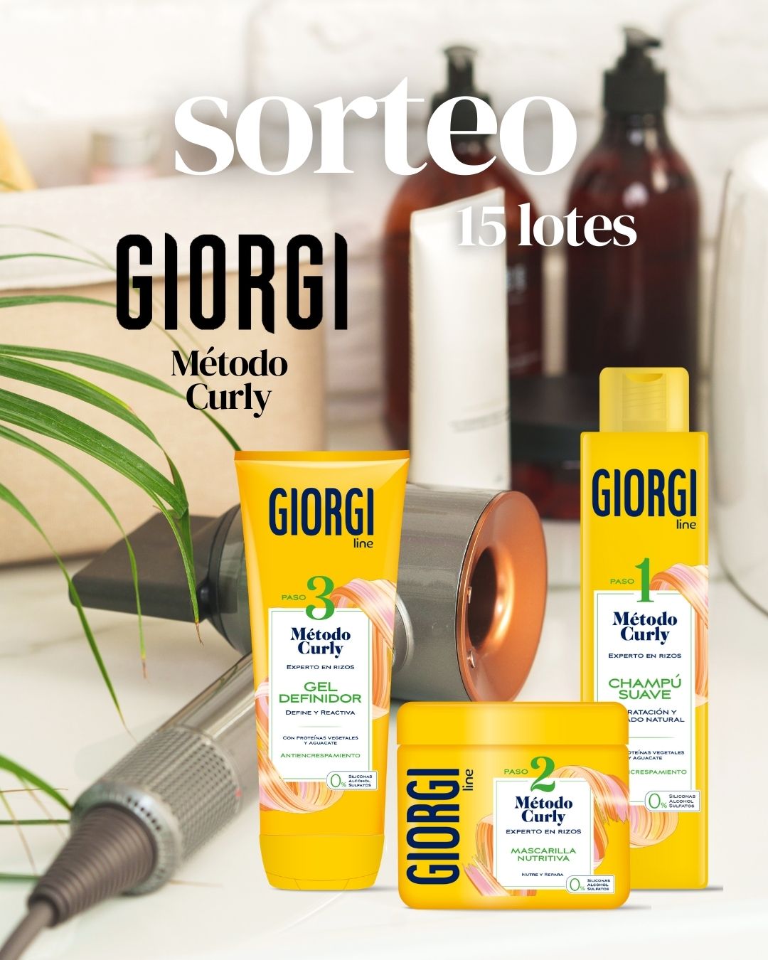 El regalo consiste en 15 Lotes Giorgi Método Curly (15 GANADORES en Instagram) COMPUESTO POR: